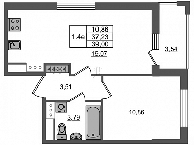 19.07 м2