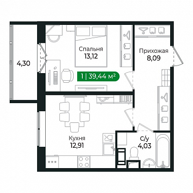 39.44 м2
