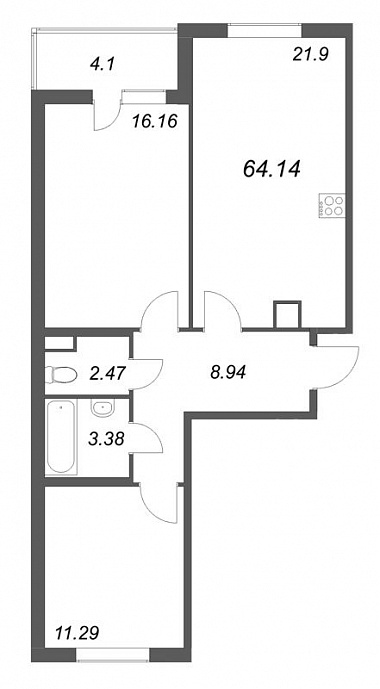 64.14 м2