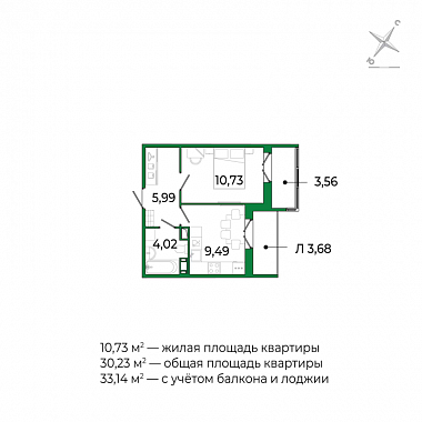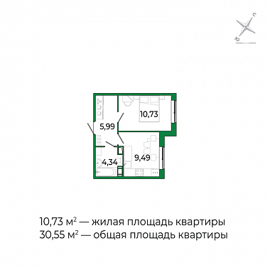 10.73 м2