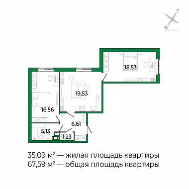35.09 м2