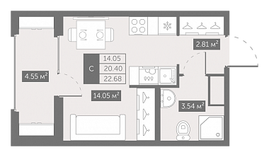22.68 м2