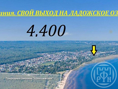 Продам выравненный участок в Коттеджном посёлке «Ладожский Маяк» на берегу Ладожского озера с песчаным пляжем. Участок расположен таким образом, что имеет выход на набережную Ладожского Озера, д. Коккорево. Информация о посёлке: + Территория охраняется - на выезде пропускной пункт со шлагбаумом и видеокамеры установлены во всем поселке. + Охрана осуществляет мониторинг территории на машине ( безопасный отдых для детей и охрана домовладений ). + Электричество от ЛенЭнерго до 15 кВт + Дорога до участка - асфальт. + Смонтированная дренажная система вдоль дорог. +Установлены детская площадка ( 300 метров). + Установлена спортивная площадка ( 300 метров). + Рядом находятся магазин ( 500 метров). + Кафе с зоной отдыха с очагом