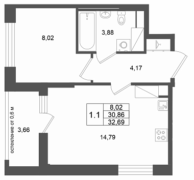 30.86 м2