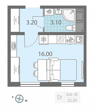 22.3 м2