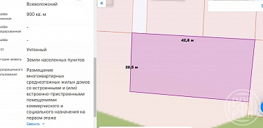 г.Всеволожск,Армянский  переулок. В продаже  земельный участок  9 соток правильной формы (42,8× 20,5), высокий  сухой. Электричество  магистральный газ, центральный водопровод  по границе  участка. Возможно строительство многоквартирных  среднеэтажных жилых домов. Граничит с коттеджной застройкой. Отличный, перспективный участок.
