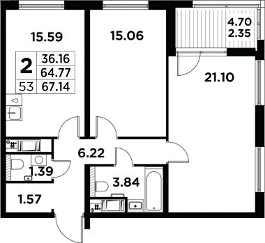 21.39 м2
