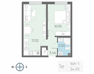 34.93 м2