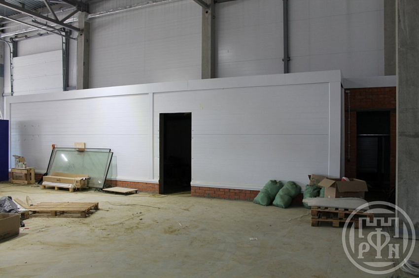 Фундамент здания – монолитная плита, утепление – сэндвич-панели толщиной 150 мм, полы – антипыль, нагрузка 6 тонн на кв. м.