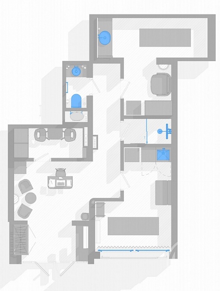 Планировка: продуманная и функциональная. Включает зону ресепшена для встречи клиентов, два отдельных кабинета для специалистов, а также необходимые бытовые и технические зоны (санузел, душевая, техническое помещение).