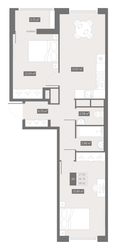 17.07 м2