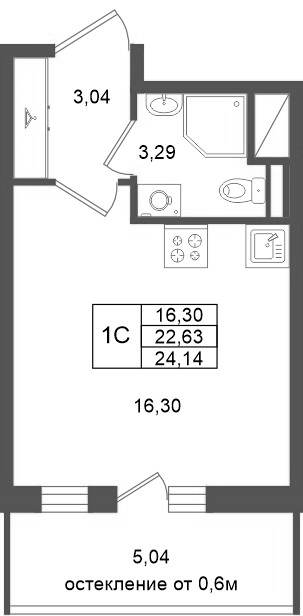 16.3 м2
