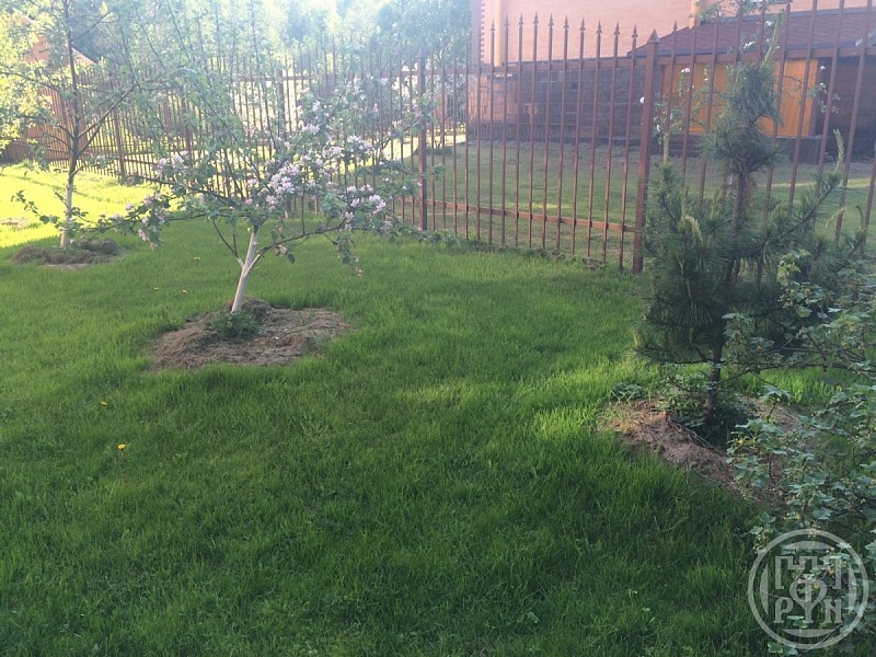 На участке в 7 соток разбит уютный двор утопающий в зелени. Территория огорожена, имеется навес для автомобиля.
