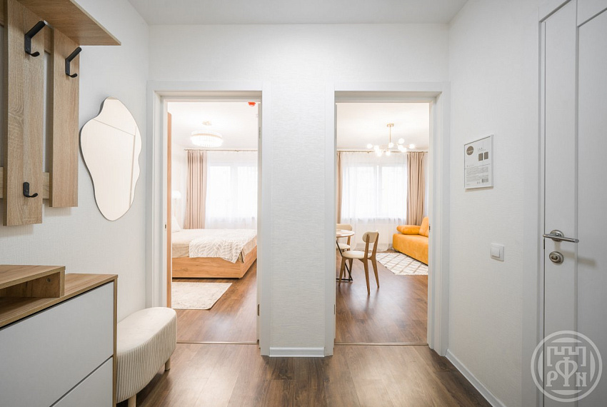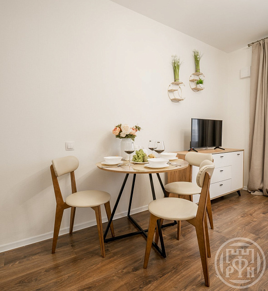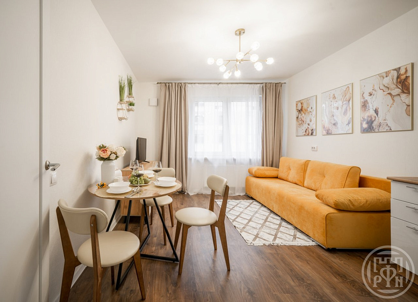 Сдается современная удобная квартира в доме комфорт-класса - 32 кв. м. состоит из спальни 13 кв. и большой кухни-гостиной 13 кв.м с удобным раскладным диваном и телевизором.