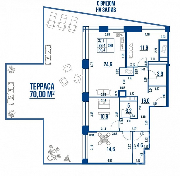 Высокие потолки от 3 м: Обеспечивают дополнительную воздушность и свободное пространство.