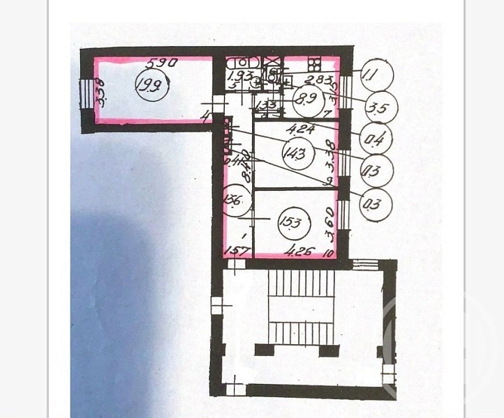 Комнаты в квартире раздельные, площадью 15,3, 14,3 и 19,9 квадратных метра. Кухня — 8,9 квадратных метра. Коридор просторный, с множеством шкафов для хранения вещей. Парадная большая, с видеонаблюдением.