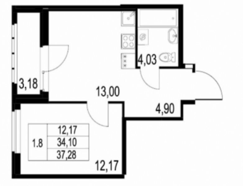 Удобная планировка: просторная кухня-гостиная и отдельная спальня позволят комфортно разместиться большой семье.