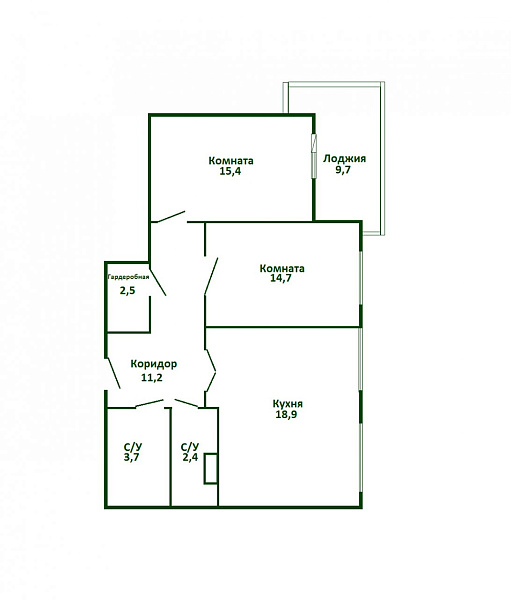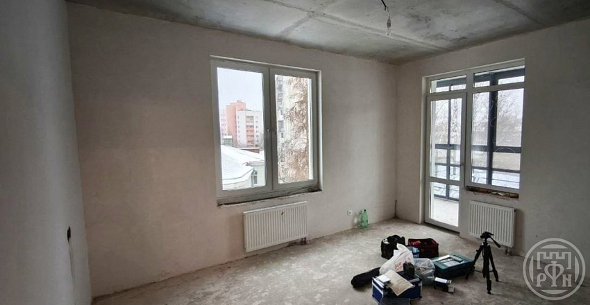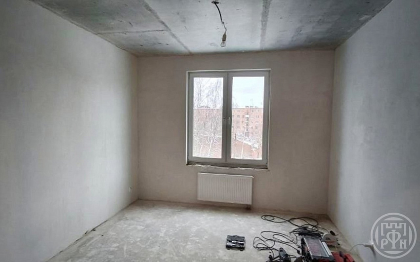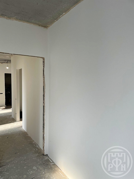 В комнатах стены с отделкой под обои, в коридоре, а в кухне стены подготовлены под финишную шпаклёвку для покраски.