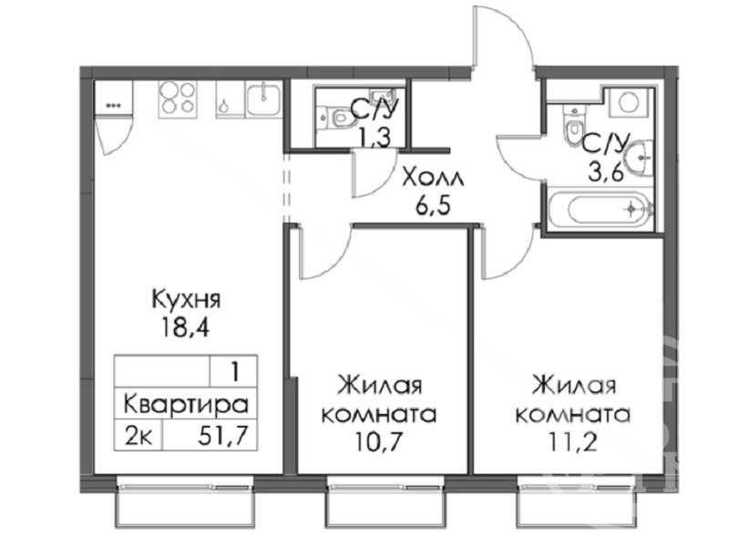 Продам 2- комнатную квартиру с кухней- гостинной в ЖК Витебский парк.