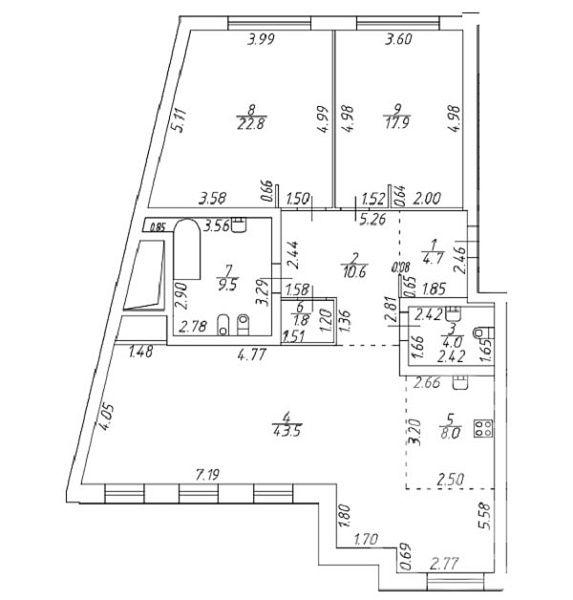 Из окон квартиры открывается вид на Неву, разводной Литейный мост, крейсер Аврора и Петропавловский собор. Квартира без отделки, с увеличенными окнами и высотой потолков до 3,31 метров.