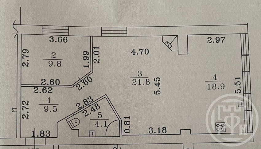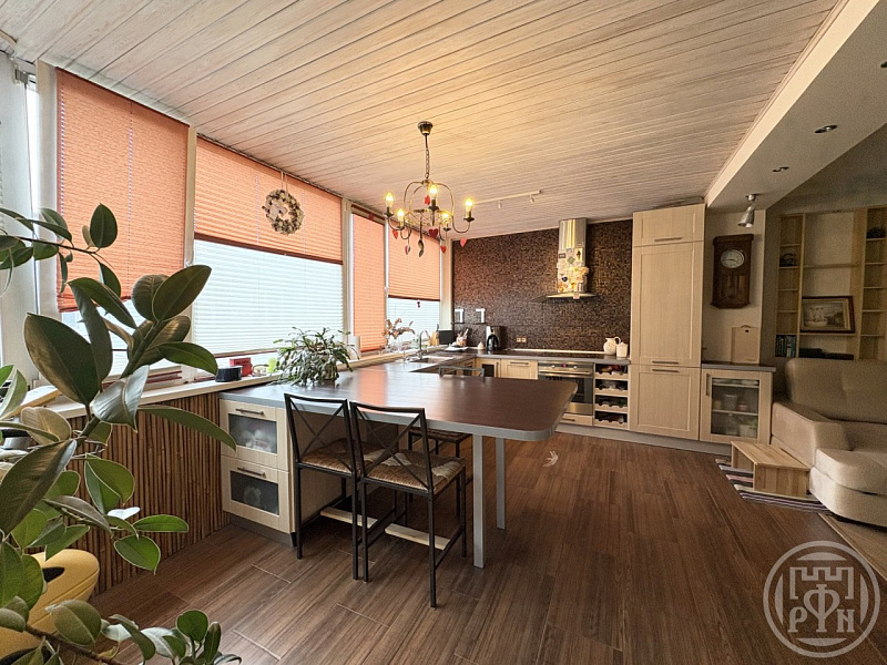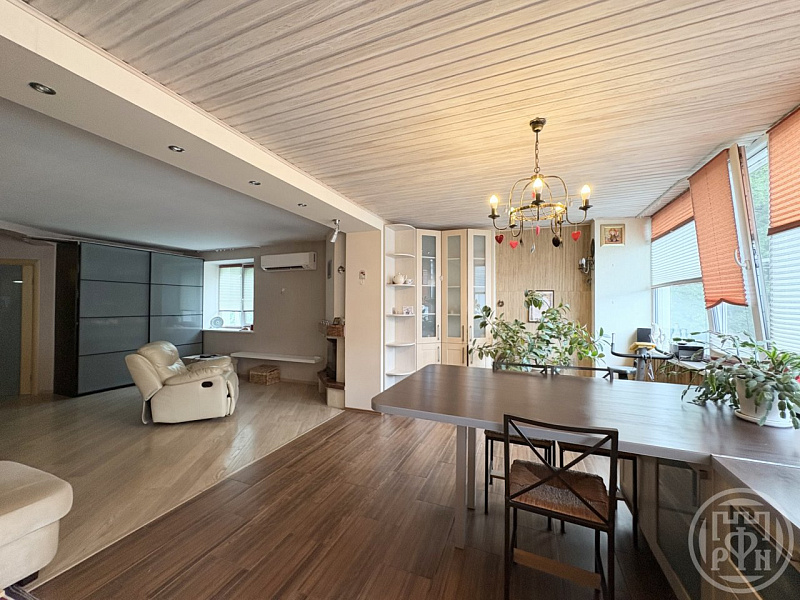 Общая площадь 64,1 кв.м., жилая 31,6 кв.м., кухня 18,9 кв.м. Вид из окон на две стороны.