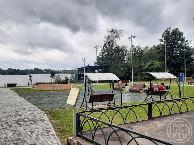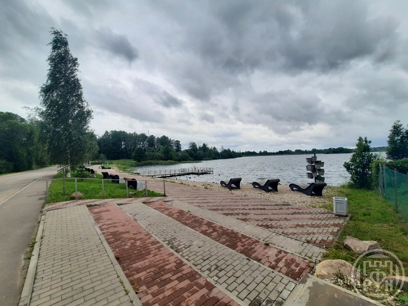 Это чудесное место рядом со Псковом, посёлок располагается на берегу большого живописного озера, набережная благоустроенна детскими площадками, пляжем и спортивными тренажёрами. С пристани можно покормить лебедей и уточек.