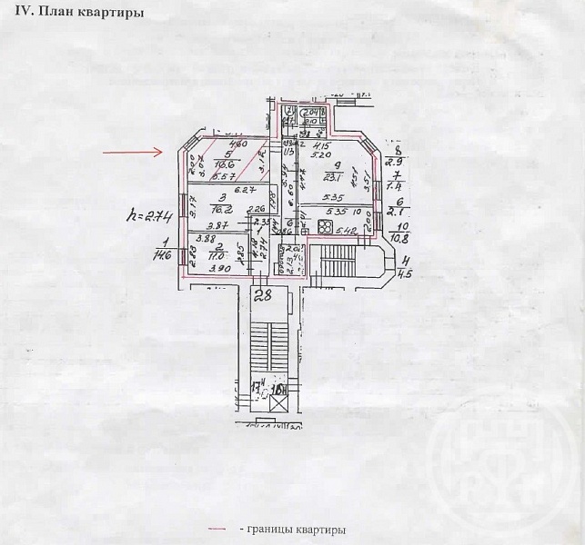 В квартире 4 комнаты. Санузел раздельный. На кухне есть чёрный вход и кладовка.