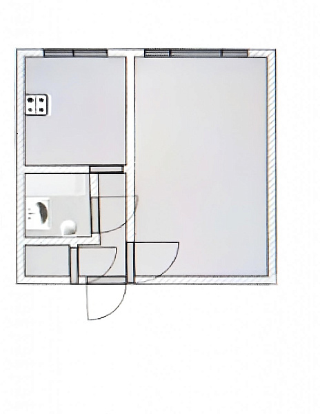 Общая площадь- 30.3 м. кухня- 7.4, комната- 16,6 м. Дом панельный, 1972 года.