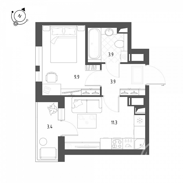 Продается уютная однокомнатная квартира , где одна полноценная комната + кухня-гостинная, в современном жилом комплексе ЖК Монография . 30м2.