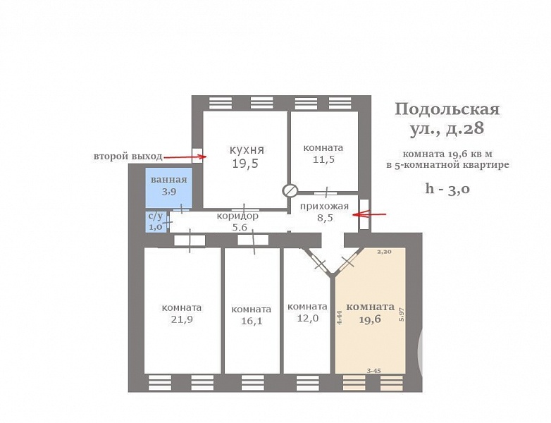 Ищите комнату в малонаселенной квартире? Есть для Вас хорошее предложение: комната 19,6 кв м с двумя окнами в пятикомнатной малонаселенной квартире буквально в пяти минутах от метро «Технологический институт». Высота потолка - 3 м. Большая квадратная кухня 19,5 кв м - для вас собственная газовая плита. Два входа в квартиру, расположена квартира на 4 этаже 4-этажного дома. Соседи в квартире не живут, есть арендаторы (2 человека), очень спокойные и адекватные люди. Наше предложение идеально подойдет для студента, как инвестиция для последующей аренды, или как старт для приобретения собственного жилья.