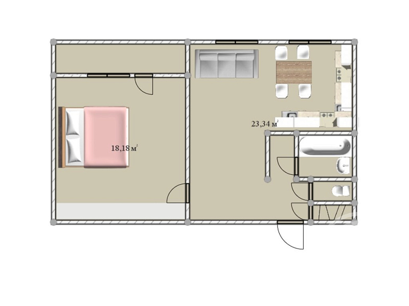 Удобная планировка данной квартиры позволяет сделать кухню-гостиную.