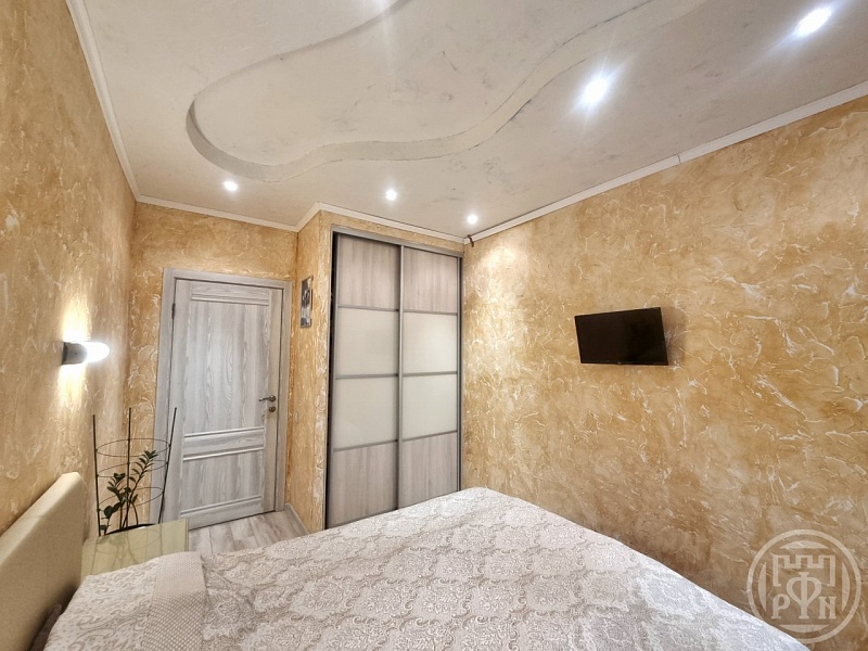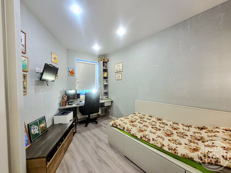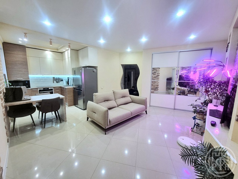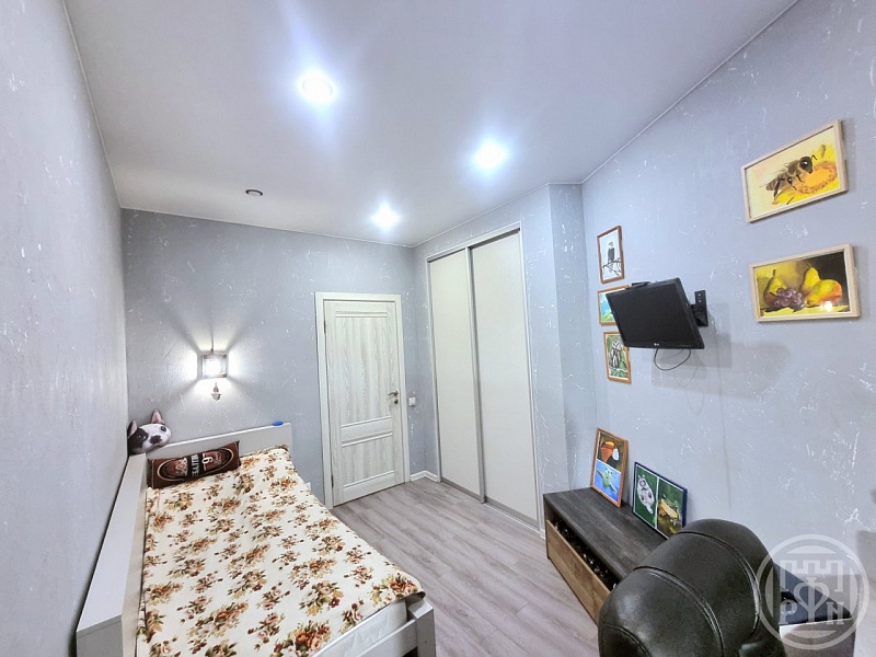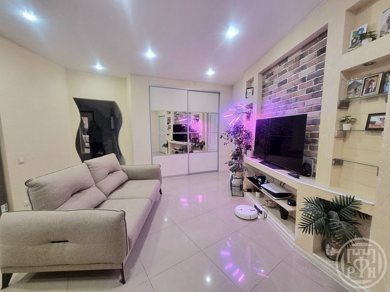 В квартире 2 раздельные комнаты 10 и 11 кв м, кухня-гостиная 28 кв м, вместительные встроенные шкафы, застекленная лоджия на 2 комнаты, система теплый пол во всей квартире, установлен кондиционер.