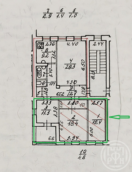 Эксклюзивный проект для инвестора — три изолированные комнаты в четырёхкомнатной квартире.