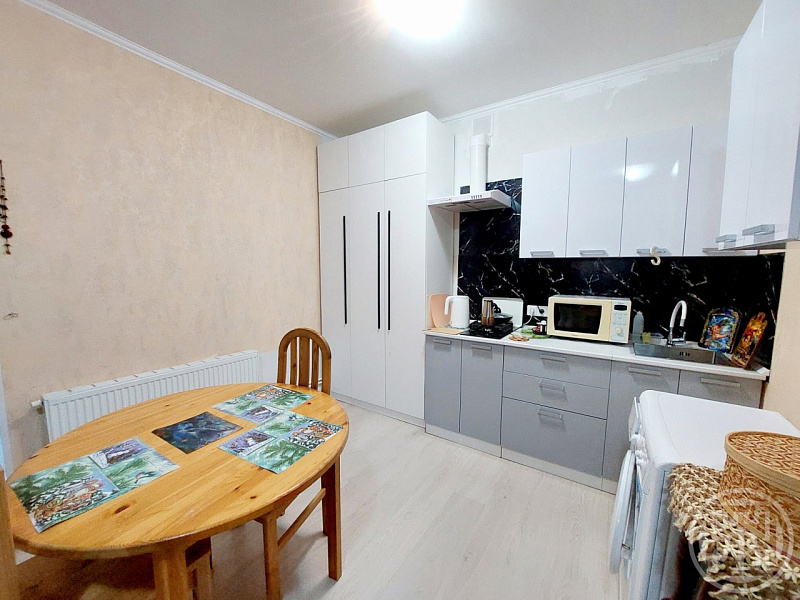 Остается новая кухня, шкаф, бытовая техника, частично останется мебель. В прихожей оборудована удобная гардеробная для хранения вещей.