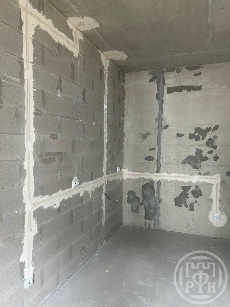 Выполнены основные работы по подготовке к ` Чистовой отделке``: Залита стяжка пола, установлены радиаторы отопления, счетчики горячей и холодной воды. Проведена электропроводка.