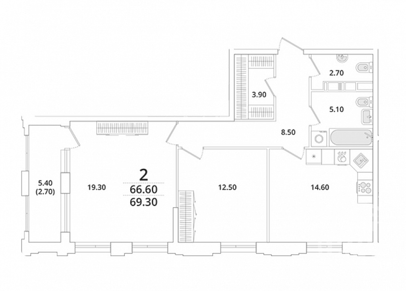 два санузла (5,1 м и 2,7 м ) — комфорт для всей семьи.