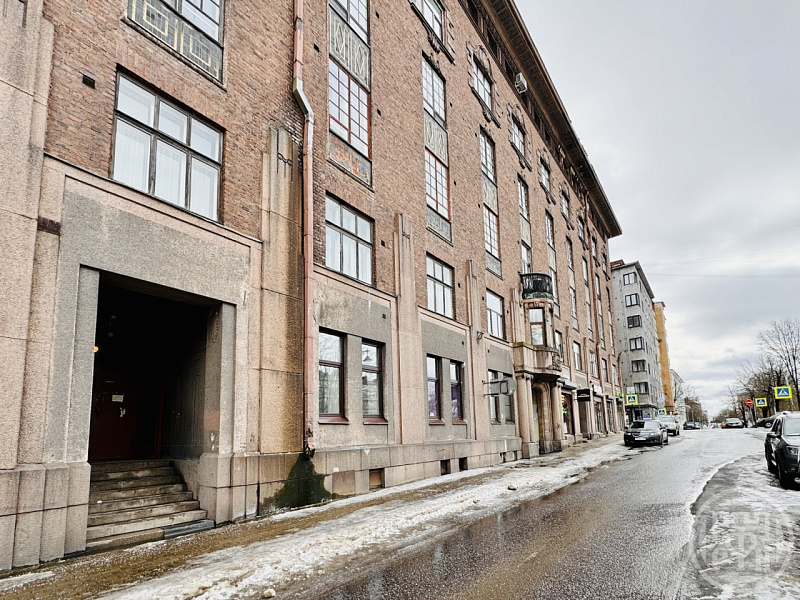 Расположение—безупречно: сердце исторического центра. Вход в парадную—непосредственно с проспекта, что подчеркивает статус дома и его архитектурную значимость. Из окон открывается бесценная перспектива на парк и жемчужину мирового модернизма—библиотеку Алвара Аалто.
