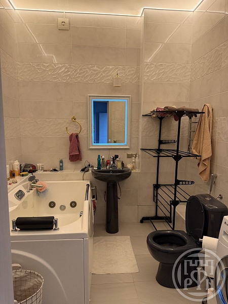 В квартире большой коридор, большая ванная с джакузи, тёплый пол в ванной и в коридоре. Просторная кухня, имеется новая техника (духовой шкаф, варочная панель, посудомоечная машина, холодильник, свч-печь). Столешница кухни и фартук выполнены из камня по индивидуальному проекту.