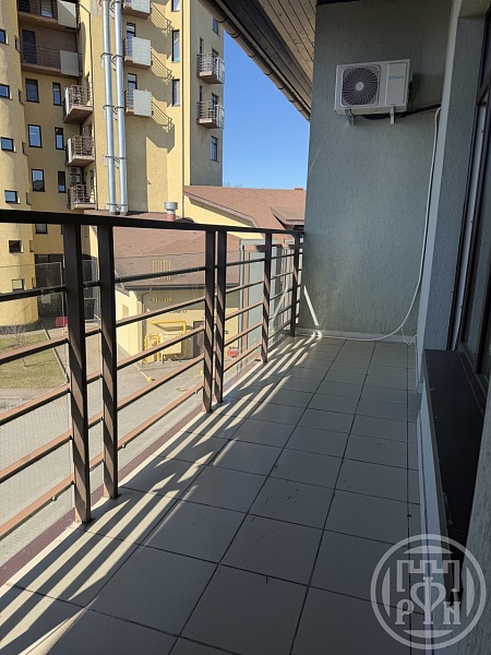 Апартаменты с двумя комнатами, просторной кухней и балконом с двумя выходами: из кухни и из спальни открывается вид на лес. Лоджия с двумя выходами: с коридора и со второй спальни вид во двор комплекса.