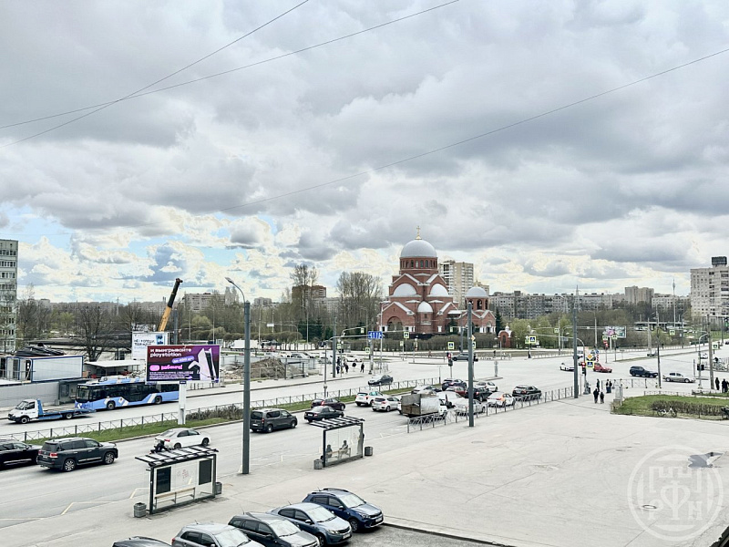 Окна кухни и гостиной выходят на Гражданский проспект, окна двух спален - во двор.