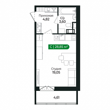 28.85 м2