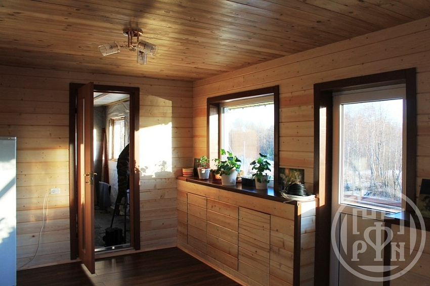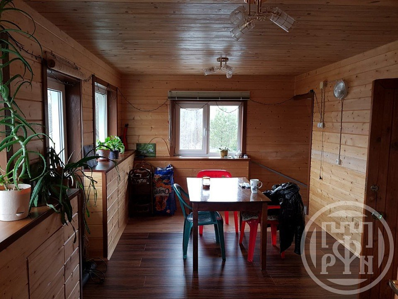 Состояние дома отличное, установлены стеклопакеты. Полы – ламинат, на кухне пол с подогревом. К дому пристроен гараж. На земельном участке также установлена баня. На участке растёт небольшой сад с плодоносящими яблонями и сливами. Так же на берегу озера установлены водные гаражи для лодки и катамарана. Подключены все коммуникации, электричество 15 кВт, газ в баллонах, отопление – печь, камин, установлен электрокотел, что даёт возможность на свой вкус регулировать температурный режим.