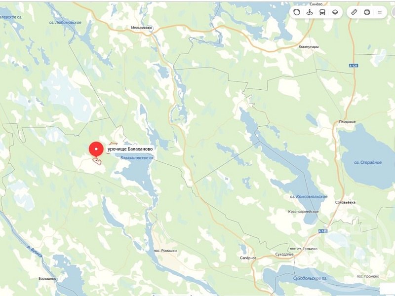 в 10 км от поселка Ромашки Приозерского района. Место бывших финских хуторов.