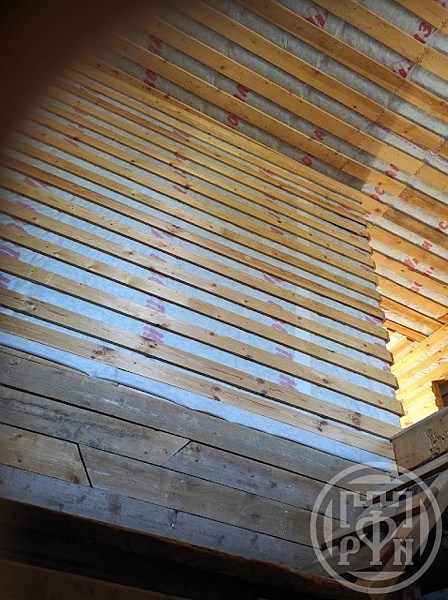 Материал стен: бревно и брус, обшитые OSB-панелями снаружи, утепленные изнутри утеплителем PAROC.