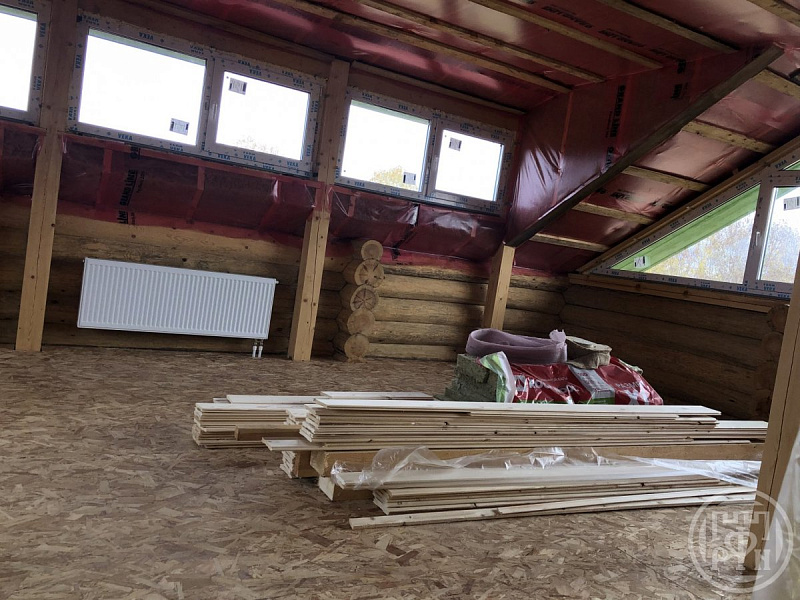 Продается большой коттедж из бревна в деревне Слапи. Возраст сруба 1 год, 26-28 см, рубленный в чашу. Бревно отличное, высокого качества, все сделано по совести и качественно! На первом этаже планируется коридор, спальня, котельная с бетонным погребом, санузел, сауна и большая кухня-гостинная размером 30 кв.м.. Второй этаж большой, там планируется 3 спальни, холл и второй санузел. По всему первому этажу теплый пол + конвекторы. Пол залит. Электричество 15 кВт. На участке скважина. Отличное месторасположение, спокойное и тихое место, сосновый и смешанный лес, недалеко река Луга. В деревне есть магазин, автобусная остановка (автобусы ходят каждые 10-15 минут). До центра города Луга 5 км, в радиусе 2-3 км находится 3 Озера (Туровское, Заклинское, Нелайское) с отличными пляжами и местами для отдыха. Участок ровный, сухой с отличным подъездом.