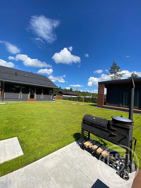 Отдельно стоит рассказать о современно оборудованной бане с комнатой отдыха и просторной парной, также на участке есть мангальная зона с просторной и современной застеклённой террасой