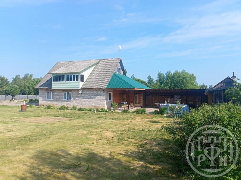в 500м от озера на участкe 20 соток. Участок ровный и сухой. В доме центральный водопровод, канализация, отопление электрически и твердотопливный котёл.