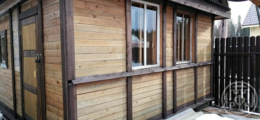 Все строения построены на ленточном фундаменте, отделаны высококачественной вагонкой( покрашена proNatur защитно- декоративным составом для дерева) , крыши покрыты ондулином, проведено электричество 15 квт.