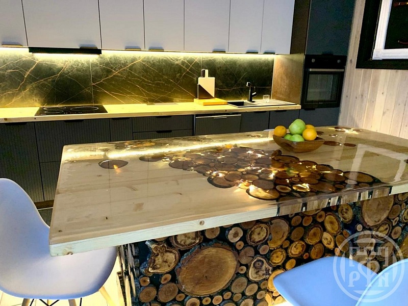 КУХНЯ — отлично укомплектована кухонным гарнитуром и бытовой техникой ведущих брендовых производителей. Обеденный стол изготавливался на заказ несколько месяцев и имеет уникальную, индивидуальную разработку, с использованием только натуральных материалов. Весь декор регулируется от пульта управления.