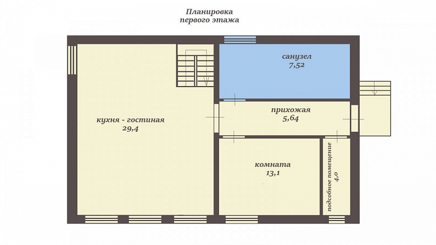 В доме два этажа. ПЕРВЫЙ ЭТАЖ: прихожая, санузел, кладовая, комната, кухня-гостиная. ВТОРОЙ ЭТАЖ: холл, четыре комнаты, санузел.